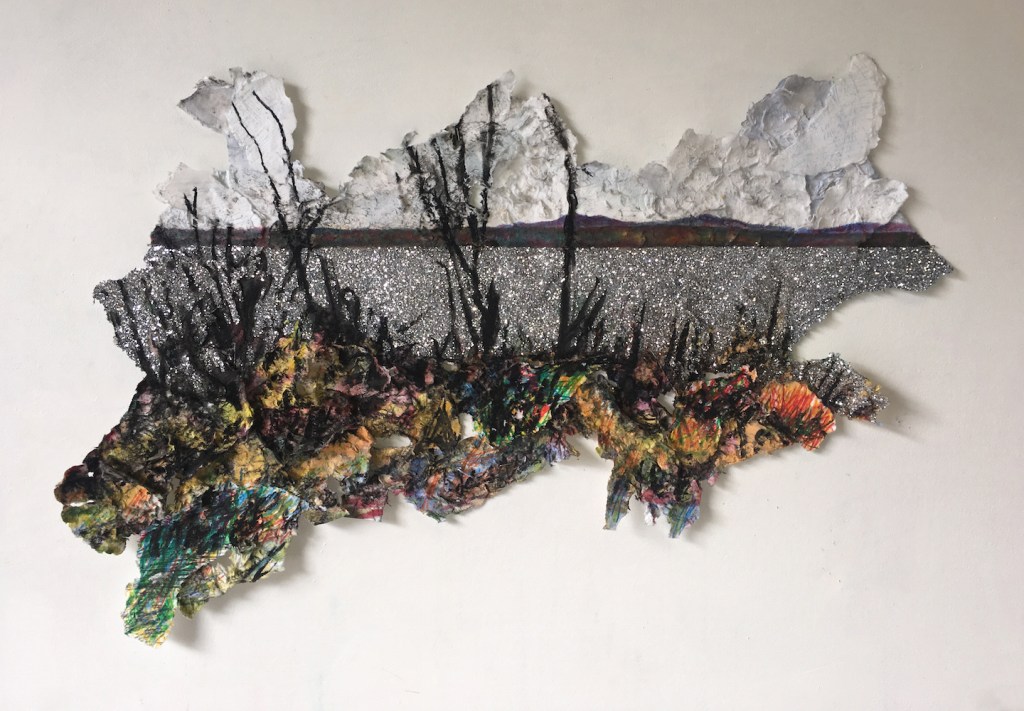 Ute, 2018, 20 x 30 inches, Watercolor, charcoal, colored pencil, graphite and glitter on paper, 20 x 30 inches