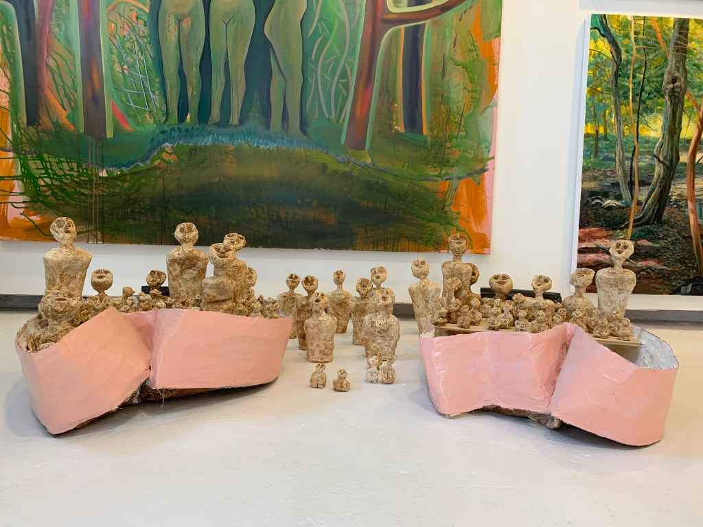 This was an installation at LAB Space in Hillsdale, NY. The show was called The Magic Garden, was curated by Julie Torres and Ellen Letcher. They took all the 140 Guys I had and installed them in and around two of my old Wrecked Life Rafts. I thought it was genius.