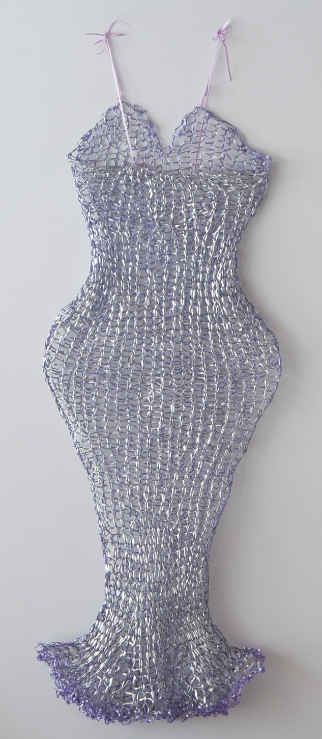 Chainmail Dress (15), 2011, Lavender ribbon and silver spray paint, 58 x 22 in.
